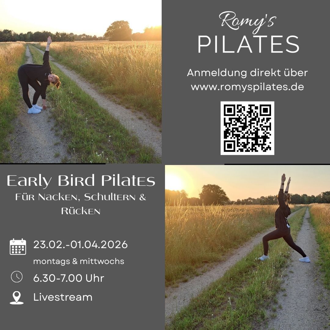 Early Bird Pilates Livestream/Live-Online für Nacken, Schultern, Rücken - 23.02.-01.04.2026